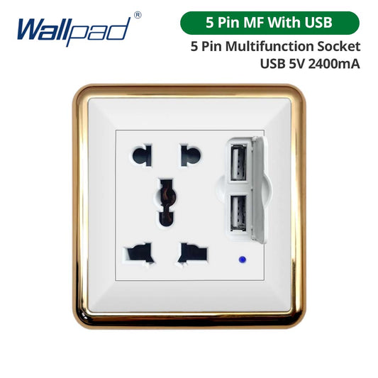 Jamil Wallpad EU- USB Black Acrylic Panel With Gold Border 2 Way Wall Light Switch With LED Motion Sensor